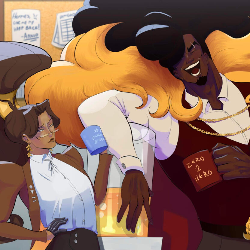Zeus was tricky to design. I needed to create a boss type of character who looked high and mighty and didn’t have to try because he was the boss of everything. I really focused on the face for this reason, trying different head shapes and features. I think I hit the nail right on the head with the design though.I wanted to make him seem… like a jerk to put it nicely… having this design peer-reviewed helped me get a sense of what kind of character he seemed like just based on physical traits. Let's say that the feedback gotten had affirmed the design choices I had made for his final design.With his only nod to his godhood being his lighting tie, Zeus has shed his suit jacket for something more casual. Showing off his arrogance as the head of Olympia and not having to work as hard to prove himself like the rest of the Gods.