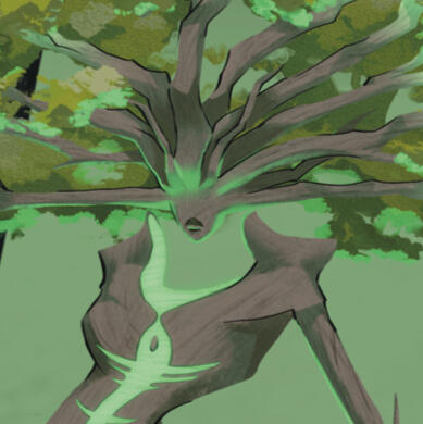 "A kind but incredibly powerful goddess that lies with creatures that care for the land that they reside in and works to redeem others by leading them to a better track."