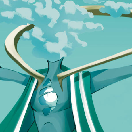 "A flamboyant deity who lies with and protects travellers and merchants. They have a known rivalry between them and Nero. They are the protector of the race, courtesy of Goldenhorn."