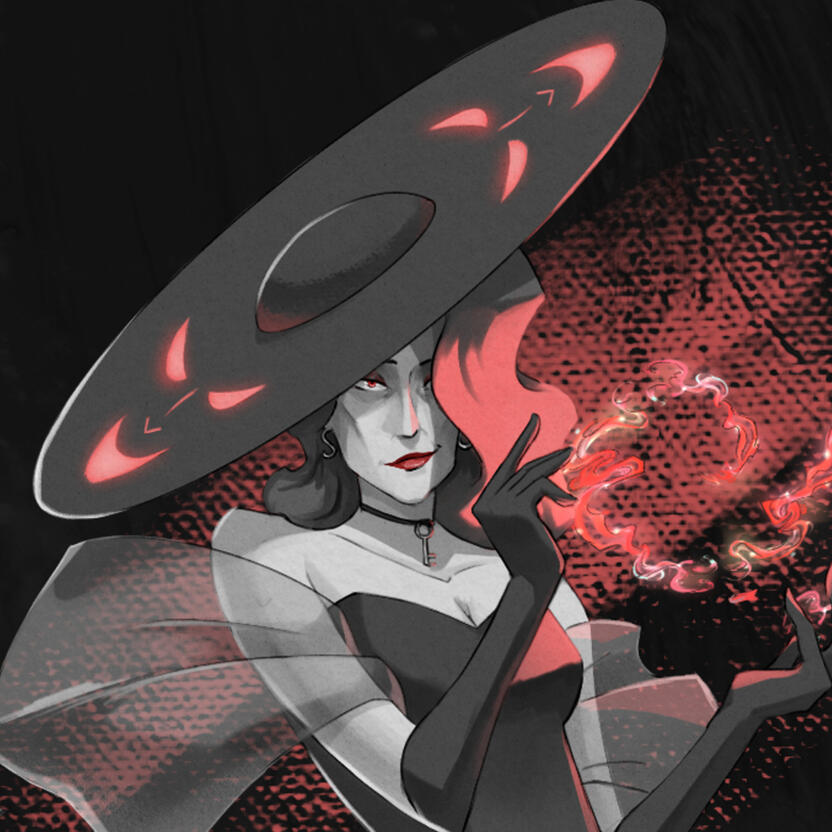 As Hecate is not a well-known goddess; I felt as if I needed more hints to what kind of goddess she is. Her design gives the most nods to godhood than the rest of the lineup. As a goddess of magic and witchcraft, I have her wielding this red energy and the tail ends of her dress are also wafting away. She is often represented as a goddess with 3 bodies, I made homage to this with her hat having her other two faces. She is also represented by keys and snakes which are represented by her jewellery.With these designs, I wanted to focus primarily on the shape language of their silhouette. In traditional animated media, silhouette cues are an important tool to tell a character’s motives and personality without audibly telling the audience. Silhouette is also important in a film noir scenario, where the lighting is low. Even with the mysterious nature of film noir, the audience needs to be able to recognise the silhouette, so that the basic design reads.